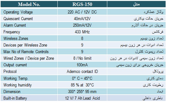 • قابلیت اتصال 8 زون سیمی (NC NO) و 8زون بیسیم ( 51 سنسور بیسیم )