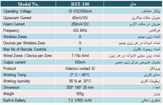 • 8 زون بیسیم، 9 سنسور در هر زون، 51 حافظه ثبت ادوات بیسیم.