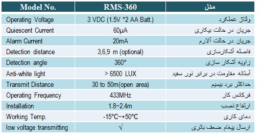 • قابلیت تنظیم حساسیت و حداکثر برد ناحیه تحت پوشش