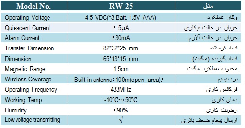 • صرفه جویی در مصرف باطری با تغییر حساسیت مکنت نسبت به فاصله زمانی باز شدن درب یا پنجره